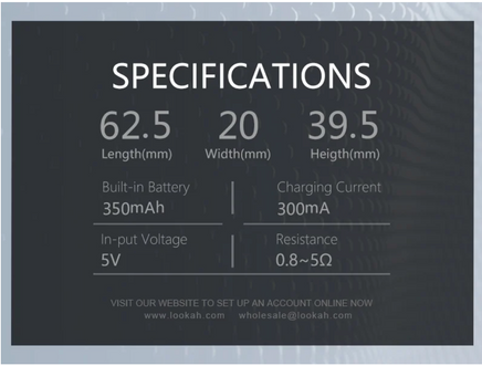 This vape battery has a 350mAh capacity and offers three preset voltages - 3.4V, 3.7V, and 4.0V - so you can choose the perfect flavor or cloud. Each voltage is represented by a different-colored LED light (blue, purple, or white)