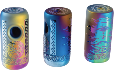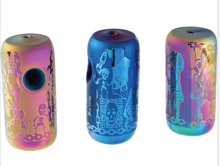 This CHONKY pipe is crafted with precision and style, our glass Electroplated Barrel features an almost engraved feel. This hand pipe offers a unique smoking experience that has a similar design to a steam roller.  Because of its bubble shape it can stand on it's own. Enjoy smooth hits and standout design with our Electroplated Barrel Hand Pipe. Dimensions: 4.5 inches tall and 2 inches wide