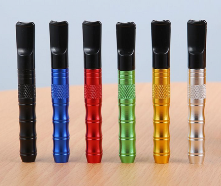 3.2" aluminum anodized bat with plastic mouthpiece