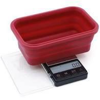 The Mini Crimson digital mini scale is a powerful pocket scale that includes a collapsible silicone bowl and latching cover, which makes it incredibly versatile and ideal for a wide range of uses. The red and black tie dye bowl is made of food-grade silicone, making it dishwasher safe, microwave safe, and of course safe to use with food! The bowl flattens when not in use, creating a snug-fitting case to safely store your Mini Crimson scale in. The matching plastic cover has a vent, and a latch to lock the scale inside until you’re ready to weigh.