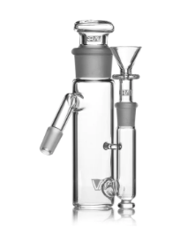 The GRAV® Phoenix Ash Catcher is 5" tall and made on 38mm tubing. Ice can be added through its removable glass lid. Its 45° angled arm is designed for use with a 14mm female joint on any beaker or angled-based water pipe. The phoenix ash catcher comes ready to use with a 14mm funnel bowl and works best with approximately 1.5" of water.