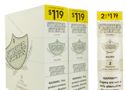 Mark a joyous occasion with a little boost from these Swisher Sweets Silver Cigarillos cigars. Carefully picked tobaccos are used to lend these cigars a robust taste. The rich and creamy flavor of delicious blends perfectly with the tobacco and is sure to make both avid and newbie smokers swoon. Finally, the cigars are rolled up in a natural leaf wrapper that gives them a mellow taste and subtle hint of greenish-brown color.