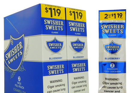 A burst of freshness and the delectable taste of luscious, juicy blueberries hits you when you smoke a Swisher Sweets Blueberry cigar. To add to the delectable blueberry flavor, each cigar has a sweetened cap that leaves behind a sweet taste every time you smoke. The cigars are perfectly enwrapped in a natural wrapper, giving them an appealing, copper-toned finish. A combination of different tobaccos has been used to create a mouth-watering taste and flavor that goes well with the natural wrapper.