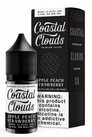 Coastal Clouds Apple Peach Strawberry 30ml Nic Salt Juice is a divine blend of juicy apples, peaches, and strawberries in a smooth 50%VG/ 50%PG nicotine salt formulation that's perfect for your favorite pod mod or similar low-wattage device.