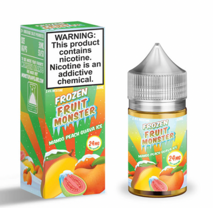 Mango Peach Guava by Frozen Fruit Monster is a blend of fresh sweet fruits with hints of menthol on the exhale. Available in 30ml bottles, the Frozen Fruit Monster Mango Peach Guava Salt E-juice comes in 24mg and 48mg nicotine strength.