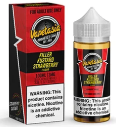 Strawberry Killer Kustard by Vapetasia is based on the original best selling, award-winning, Killer Kustard e juice flavor but adds a succulent strawberry aspect into the profile for a delectable dessert-themed vape juice.