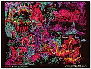 If you're loving the Ghostshrimp artwork on the latest limited edition RAW rolling trays, check out this small run of RAW x Ghostshrimp black light reactive posters.