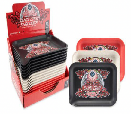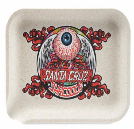 Roll up like a pro with a Santa Cruz Shredder Flying Eyeball Hemp Tray. These rolling trays feature a funnel pour spout on one corner to make handling ground bud a simple, mess-free process. Each tray has a dope design in the center that features a bloodshot eyeball with wings hovering above the Santa Cruz Shredder logo. These hemp rolling trays are biodegradable and super durable.