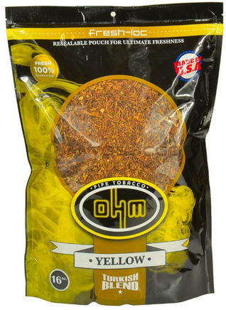 Chicago's finest manufacturer has finally released another amazing masterpiece, the OHM Turkish Yellow Pipe Tobacco. Featuring the finest amalgamation of Virginia, Burley and Turkish tobaccos this delectable blend is watered down from its original flavor strength in order to render a mellower taste profile for those whose senses are fragile. Leaving behind a low room note, this non aromatic goodness is ribbon cut in order to assure a slow and consistent burn under all conditions. The OHM Turkish Yellow Pipe Tobacco 16 oz Bag is great for traveling and transportation, perfectly packaged to impede the distribution of shake and preserve freshness for long periods of time thanks to the added Fresh-Loc zipper. Made with the ripest tobacco leaves from the crop, this Turkish delight stands out from competition when it comes to taste quality, flavor uniqueness and consistency.