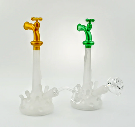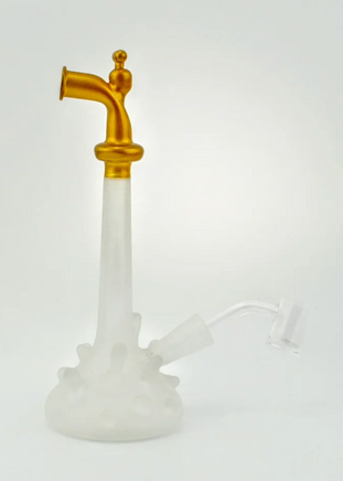 Introducing the Water Spigot Dab Rig, a stylish and functional concentrate pipe that elevates your dabbing experience. Its compact size allows it to fit in a backpack or bag, making it ideal for travel or on-the-go dabbing sessions. Available in Green or Gold, this rig features frosted glass in a splash design, adding a touch of elegance to your sessions. With a height of 8.5 inches and a width of 3 inches, it strikes the perfect balance between portability and functionality. Can be used for concentrate or flower.