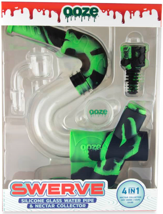 Change your smoke session up on a whim with the Ooze Swerve! This 4-in-1 hybrid piece comes with all the tools needed to enjoy it in 4 different ways: as a bong, dab rig, dab straw, and vape pen adapter. This unique piece features a sturdy base with storage for accessories, and the curvy shape resembles the "Z" in Ooze. The Swerve easily switches functions just by swapping in a different attachment and can be used with both CBD and hemp flower, concentrates, and 510 thread oil cartridges.