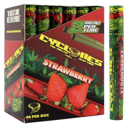 Cyclones Hemp Cones use an innovative pre-rolled cone shape which is designed for easy filling as well as giving our customers a great tasting product where your last puff is as good as your first. These strawberry flavored cones use a unique hemp material that gives users a clean smoking experience. These tubes use a secure screw top lid that keeps the cones fresh for long as possible and ensure that your cones will not come out of the tube in your pocket!